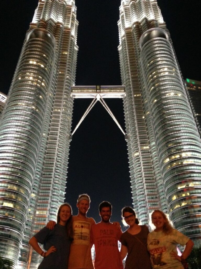 (Martín is our friend from Argentina! We took him to the Petronas Towers on night! Left to right: Jordie, myself, Martín, Marisa, and Katie.)
