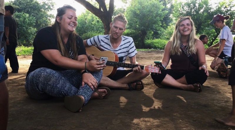 Me preparing for leading worship in another village we shared the gospel with as well as leading songs of praise with my fellow worshipers: Keaton, Caitlyn, and Kelsey!!