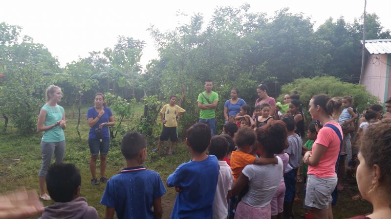 Team mates: Christen and Nayelly, sharing the Gospel with the kids in one of the many villages we did outreach and evangelism in Nicaragua!!