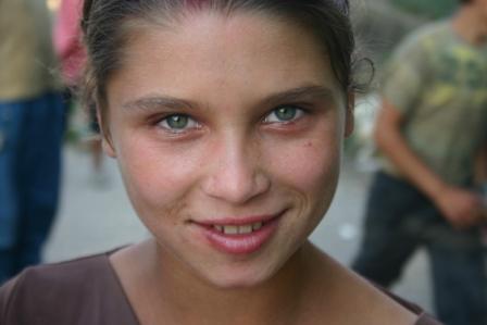 to arrive quicker, I look to my left and see an 8-year old Romanian girl