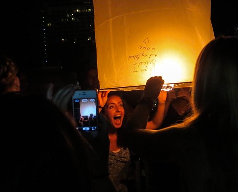 This past Thursday evening, we had a surprise get together for two of our squad leaders that both happened to have a birthday on the same day. We gave them words of affirmation and had some delicious cake, and then after the guys left, the girls released two huge Thai lanterns into the sky! We actually started with three lanterns but had some difficulty lighting the first one and only two made it successfully into the night sky.
