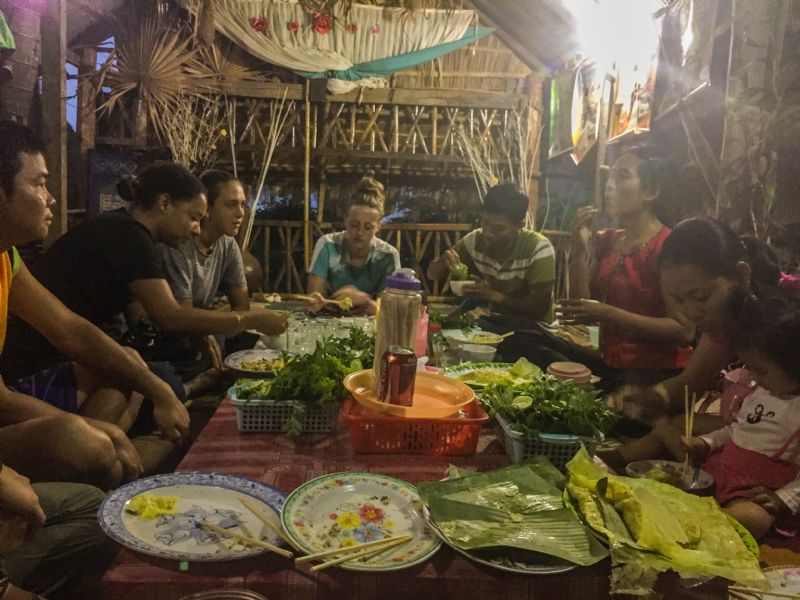 (Amazing Cambodian food eaten on the floor of a “tree house” suspended over water)