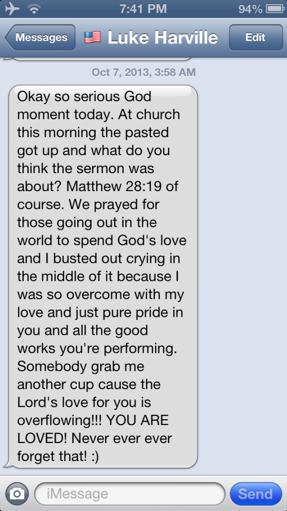 I can always count on him to send me “kitten sweet” encouragement. Usually when I need it most, just because that’s how God’s timing works. Luke is faithful to pray for me and asks how he can. He doesn’t sweep faith under the rug.
