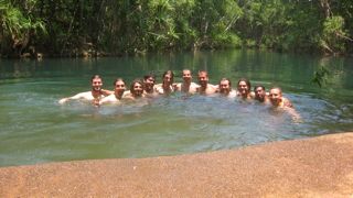 swimming at a free water park with Aboriginal kids where we cook 80 to 100