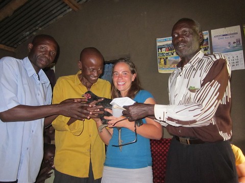Nicole receives a Chicken for a welcoming gift