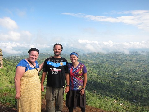 Glenalyn, I, and Megan standing on the edge of a Coffee farm