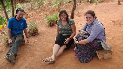 I, Cary, and Cathrine Getting Ready to Share Jesus sitting on Sweet Tiny Chairs