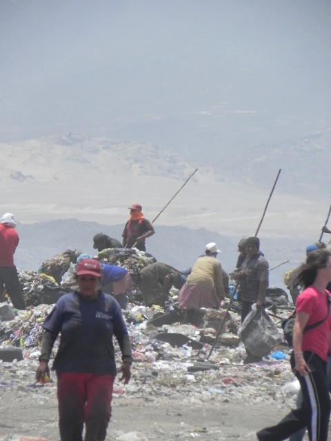 While searching for our treasures we found a lot of trash: diapers, bags of used toilet paper, dirt, syringes, dead guinea pigs, used condoms, clothes and shoes. All of us were super stoked for our gloves. From 12:30am – 6am we picked and sorted through trash bags in search of treasures; we were rather successful. Between the 6 of us working we were able to fill 4 large potato sacks of food and 6 tarps of recyclables.