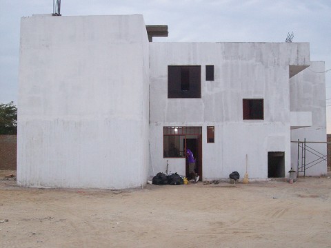 The poles in the foreground will eventually be a vocational center where the children can learn trades to earn money when they grow up.