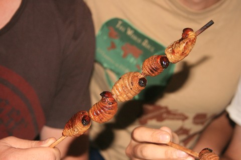 Grubs – that’s right, insects, fried on a stick: