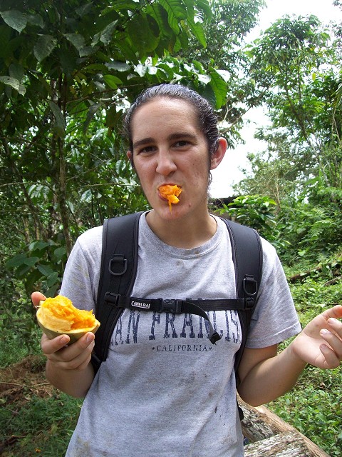Here I am eating Sapote! It tastes like cantelope but is stringy like a pumpkin. It was awesome, as long as you get one without worms in it 🙂 details