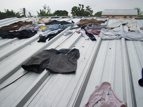 Step 7: Put some clothes on hangers, some on the line and my favorite is lying them out on the roof!!