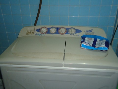 Step 7: Drain out the dirty water and then put the dial back to wash. (The water drains out through a pipe into the ground!!!)