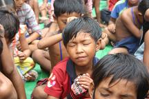 a clean tarp as the Cambodian volunteers would proceed to teach them songs and