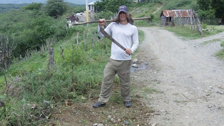 Moving forward to this week…it has been going good. Throughout the week we gave kids haircuts- at least we tried to (it doesn’t help when we randomly have electricity!). For the most part, I did labor again working outside repairing church fencing, cutting more weeds and picking up trash. Below is a picture of me with a machette, a hoe (which was broken that I fixed too) and the area I was cutting weeds & clearing out.