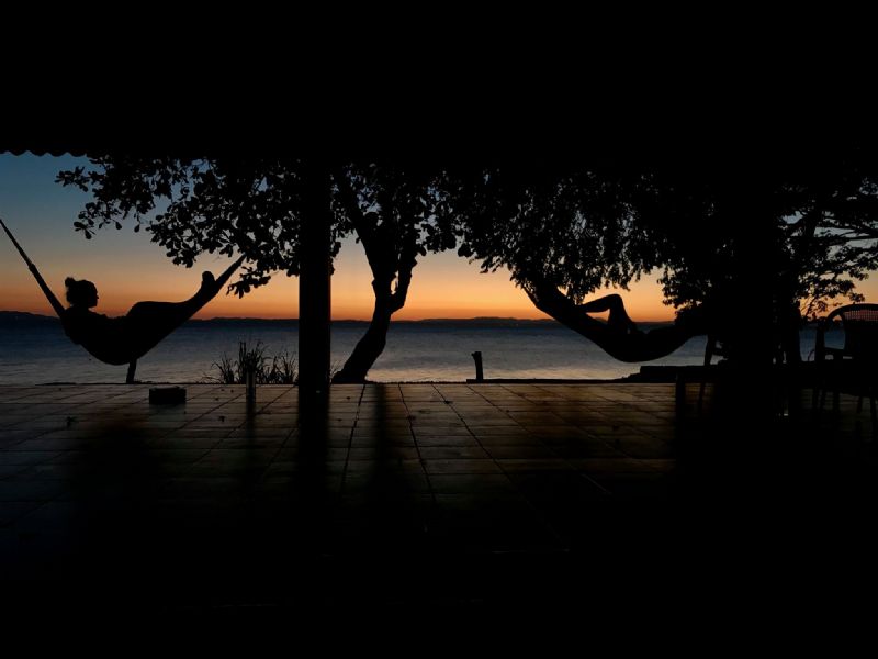 The views have been crazy cool here! The sunrises and sunsets are so beautiful! Here is a photo of Mackenzie and I in the hammocks during a sunset.