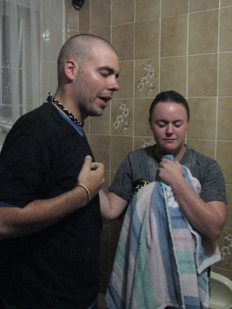 Well apparently there were snakes in the pool so 51 people crammed into the bathroom and Dave baptized me in the bathtub. At least the water was warmer!