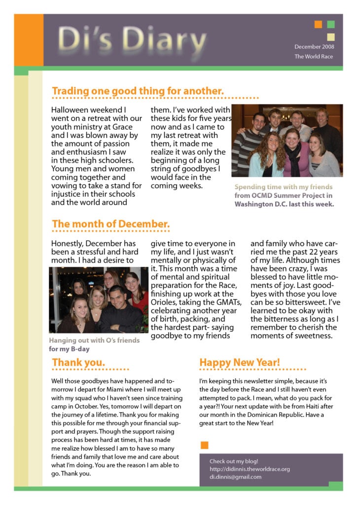 Below is my newsletter for December. It’s been one crazy month and I haven’t even started packing! Thank you all for supporting me! I leave tomorrow and I can’t believe it’s already here. I fly to Miami first and meet my team and we’ll fly to the Dominican Republic from there. I’ll keep you updated 🙂