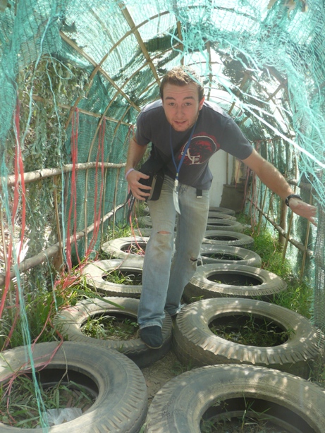A few days later, we would receive another shipment of nearly double the Bibles, and head back to the same camp, where a new group of kids are just arriving for camp. We watch the orientation speeches and the reading of the rules. The kids then pick up their bags and have to run through the mouth of a massive tiger head billboard thing and through a low ceilinged tunnel full of tires. We were waiting on the other side, to hand Bibles to the few hundred campers as they ran past. About fifteen minutes later buses full of new campers pull up and we do the whole thing again.