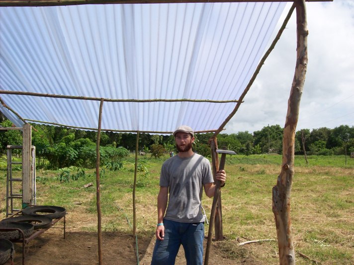 Every now and then, while hoeing on the farm, you have to pause for a picture. Here I am standing in what will function as a green house, for the cucumbers and radishes we planted hydroponically.