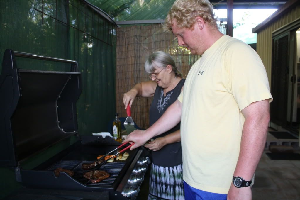 Drew and one of our wonderful friends, Julie. She treated us to a barbie – so great!