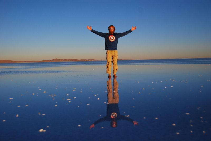 The Salt Flats are, as the name suggests, flat. Thus, there is nothing to break the wind. And of course, you have to see the sun set on the Salt Flats, which means that you’re out there as it’s getting dark. And one of the main attractions is the reflection – there is an area of the Salt Flats that has a few inches of standing water for a few months out of the year. Because of the clarity of the air, the fact that the landscape is absolutely flat, and the lack of currents in the water you can see reflections in the water. That also means that you’re standing in an inch or two of water.