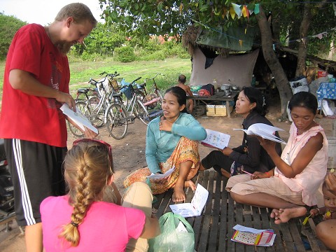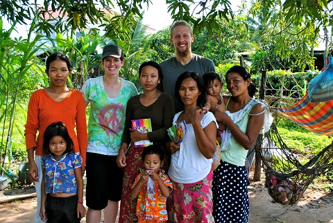 We teach them basic English words and sentences like their colors, days of the week, and family members. They love writing in their notebooks and practicing their English. Every time I write a word, they write it down, point it towards me and say, “teacher?” making sure it looks nice and is spelled correctly. One of the funnest lessons we had was learning about the colors where they had to draw three things that were that color (red shoe, blue hat, etc.). They laughed and laughed at their own drawing, but they also were concentrating so hard on the pictures they were drawing. Afterwards, Dustin got up and read them a story, and if you’ve ever listened to Dustin tell a children’s story, it’s quite entertaining, so we all enjoyed listening.