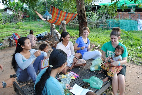 Our students are all mothers of at least two or three children, most of them crying or playing, begging for mom’s attention during our teaching time. On a good day, only three kids will be fussing as the rest of our team distracts them as I try and teach the lesson. As the lessons progress, we seem to have more and more people from the village interested in what we are teaching, even singing the songs with us when they know them!