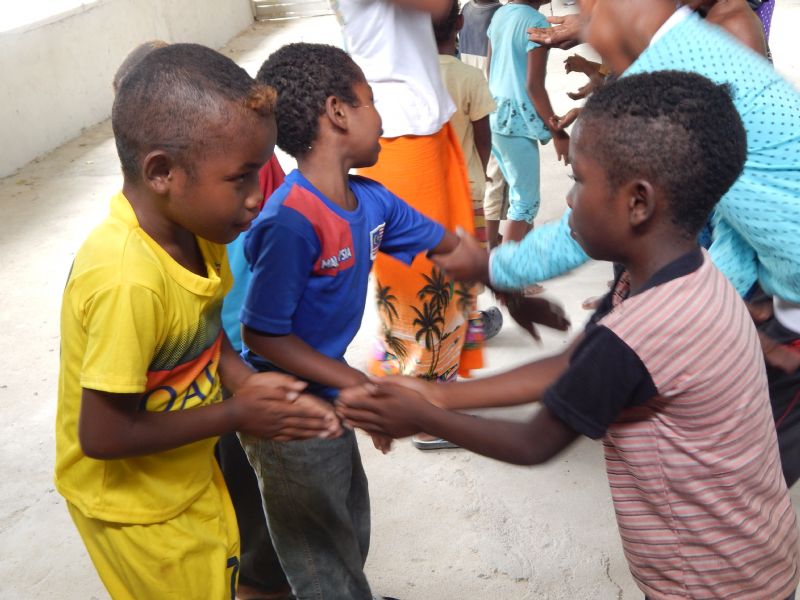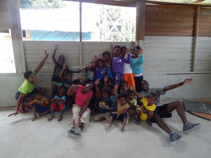 Once we arrived we were introduced to some of the elders in the community and then we had our first mission: gather kids for our event. That was a bigger effort than anticipated because of their extreme shyness and the fact that they spoke no English. Their shyness, on second thought, was totally understandable. Random adults from somewhere far away had come to their town for who knows what? I would have probably done the same! Some of the elders told us some words in their language that we could speak. “Hao” means “come” and “alo” means “hello” (not sure about the spelling for either of those), so with the only two words that we knew we fanned out into the community trying to get kids to come with us. Most of the kids that I encountered just looked at me with a look that said, “I’m not going anywhere with you.” Finally with the help of some parents/elders we got a group of a little over 20 kids to join us. That being said these kids were still extremely shy and were all lined up against a wall as far away from us as they could get.