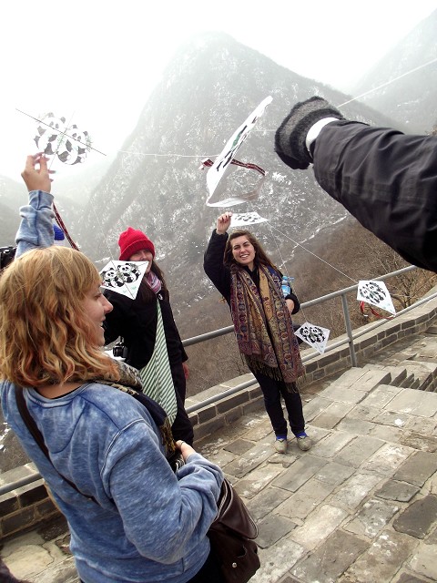 flying a kite on the great wall!