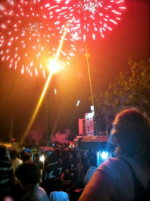 Happy 2012 everyone! This year the team and I rung in the New Year going to the city center with 200,000 other people and watching some of the best fire works at midnight. It was kinda set up like time squareish with a concert and massive amounts of people crammed in one area but instead we were all waiting for lanterns to go into the air and fire works to go off, and we were hot, not cold.
