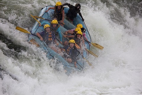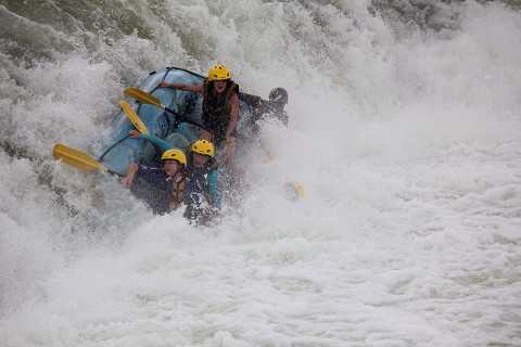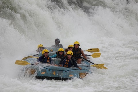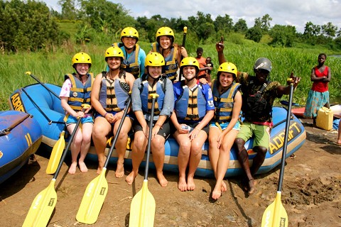 Sunday morning at 7 (which of course turned into 10:30…welcome to Africa) the entire squad left Busia for Uganda. We were headed to Jinja for two days of hanging out and resting before we started ministry in Uganda. In Jinja we not only got to stay at this amazing camp site right on the Nile equipped with western toilets, hot showers, and a bar and restaurant, but we also had the great opportunity to raft the Nile and go bungee jumping. Now comes the fun part. I wasn’t sure how I would blog this but lets just start by being honest…I was having nightmares about rafting the Nile. I am the queen of irrational fears so of course I was just certain that I would be drowning at some point stuck underneath my raft. I’ve been rafting before but the Nile has massive 5 class rapid, and about 2 tons of water flowing in it at all times so the guides thrive on flipping the rafts into the rapids.  Needless to say I was going into my wild rafting adventure with the thought that I would make sure I was on a mild route down the river.  Things were looking good and I got myself on a boat with 6 other girls from my squad…we had all decided to go the mild route. Whew that was a relief for me.