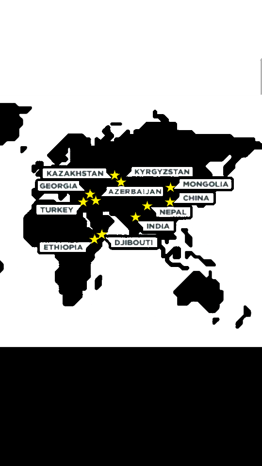 China, Nepal, India, Djibouti, Ethiopia, Turkey, Georgia, Azerbaijan, Kazakhstan, Kyrgyzstan, and Mongolia!