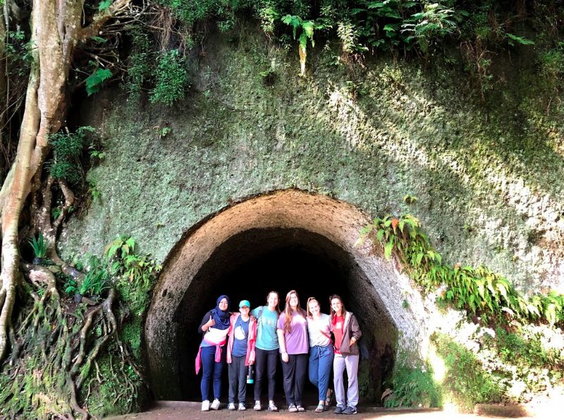 Our Home: In Indonesia, my team and I have been blessed with a beautiful home. We are staying in the guest house of Ibu Jane and Pak Steve with includes a cute courtyard, full kitchen, rooftop patio, and lovely housemates. The rooms have two bed in each so Codi and I share a room this month. I love to spend my free time in the kitchen cooking a meal while listening to a podcast or helping my teammates complete a puzzle in the living room. Bandung is also quite an amazing place. It is a big city with all the amenities you could wish for. The first week a couple of us went to get our hair deep conditioned and a massage all for only $8. So, I’m going to go back and do that again for sure! Another favorite thing of mine about Indonesia is J. Co., a donut and coffee shop that has the most amazing donuts. I originally thought that I would never find a donut that even compared to American donuts but Hey! I found one and it’s amazing. The area in which we are located is primarily Muslim. With this being said, I have gotten used to hearing the Call To Prayer five times a day and seeing hijabs on most women. I have found the religion as very beautiful and it has created opportunity to talk to Muslims about their faith, as well as, my own. Bandung is located in a little valley and surrounded by mountains/volcanos. It rains almost every day which means a lot of flooding in the city but I have missed the rain so I love it. One day, Codi and I did yoga and danced in the rain out in our little courtyard. There are some amazing areas to hike and so we have had the opportunity to see all the green Indonesia has to offer. Both hikes were gorgeous and took us into tea fields, waterfalls, steep slopes, and even having monkey guests. It took a little bit of a transition to get used to Southeast Asia but honestly now I never want to leave!