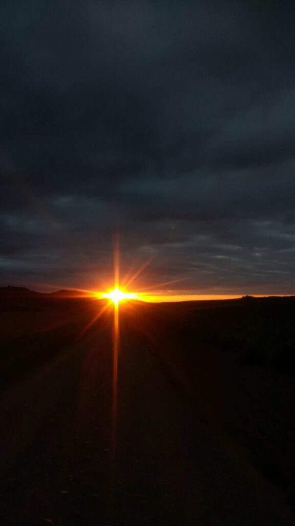 Today’s walk was fast and followed some rolling hills. These hills made for an exquisite sun rise! It came up as we climbed a hill so I would hike 500 ft then turn around to look at it and catch my breath. It felt like the most beautiful I had seen in awhile with its deep oranges and pinks. I’ve put a progression of sunrise pictures at the bottom.