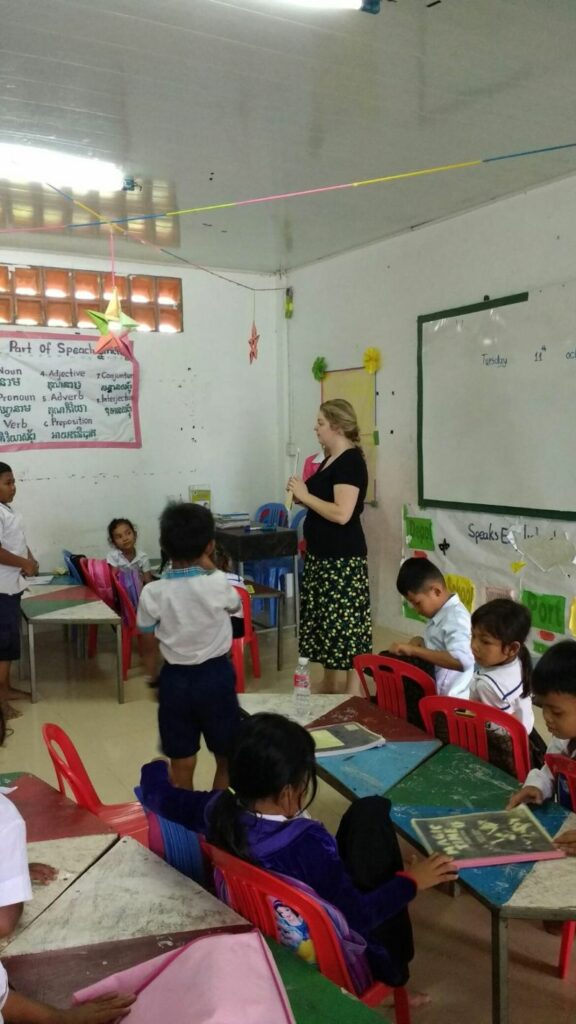 The school has roughly 200 students from the surrounding community. They are 4 to 14 years old. The children pile off the vans that pick them up and come up to us, bow slightly with hands together and say, “Good morning teacher,” in their accented English. At first, they would only wave to us or just stare. My team has joked that it feels like the scene from the movie Madagascar where the penguins say, “Smile and wave, boys. Just smile and wave,” because that is what we did for the first few days and still do at some level. Most of them now come up and say hello and do their best to ask every question they have learned in their classes. High fives and fist bumps are also a hit we have learned. (Pun intended!)