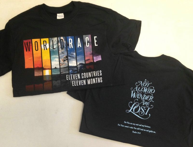 I’m selling the shirts for $20 each and all the money will go directly to fund my World Race. If you are in the Charlotte, NC or Anderson, SC area, I can arrange to deliver it to you. Just contact me at [email protected] or leave a comment below to place your order. Make sure and let me know what size you need!