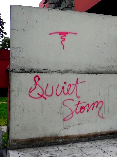 The name my team chose was Quiet Storm, or rather, that was the name God chose for us. Sometimes I feel like God has to write on the wall for me to see something, and this time he did it literally. After observing the dynamics and personalities on our new team, we agreed that we are generally laid back, peaceful people, but that there is also a lot of strength and strong personalities mixed in. It made me think of a mixture of grace and power. While Shida and I were walking the streets of Lima to go pick up laundry, we both looked up and saw graffiti on the wall in front of us – in English, no less – that read:
