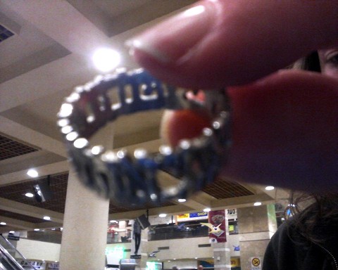 The inscription in Hebrew reads: I have found him whom my soul loves. It’s actually the same one that April has on her ring, but the design is different. It’s a reminder to me of my time in Israel, the things we’ve learned as a team and as a squad, and the fact that I have, in fact, found the one whom my soul loves and desires, and he calls this land I’m in right now his own. At the moment, I’m about to get kicked out of a mall in Arad because it’s closing, so I’ll leave you with fond wishes for a Merry Christmas.