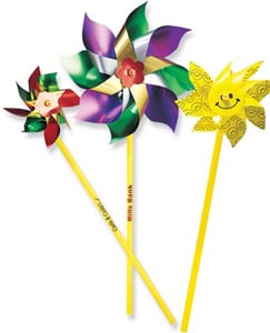 salon with a row of pinwheels in the window.  Ski poles, however, are