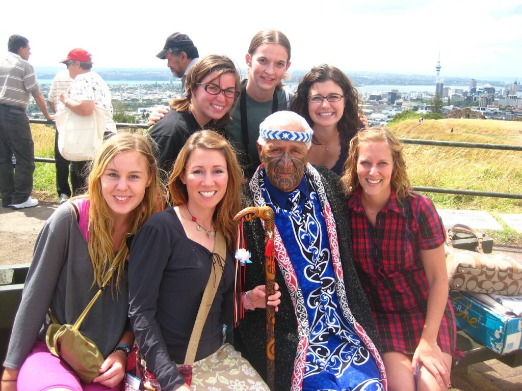 On Sunday after church our contact Kevin took us around for a little tour of Auckland. We went to a place called Mt. Eden where we met one of the most fascinating of persons. His name is Amato, the chief of the largest Maori tribe in New Zealand. We were immediately drawn to him because of this bright tribal robes and tattooed face.