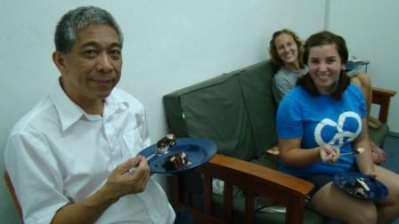 We were busy packing and cleaning as we were leaving the next day to head off to Thailand. A knock came to the door and it was one of our contacts, David from Lighthouse, that we had been working with all month. He came bearing gifts for us of blueberry cheesecake, chocolate rum cake, and pineapple stuffed pastries. I know… yum. David had already taken us out to dinner the previous week to thank us for our help so we asked him why he was bringing these treats for us.
