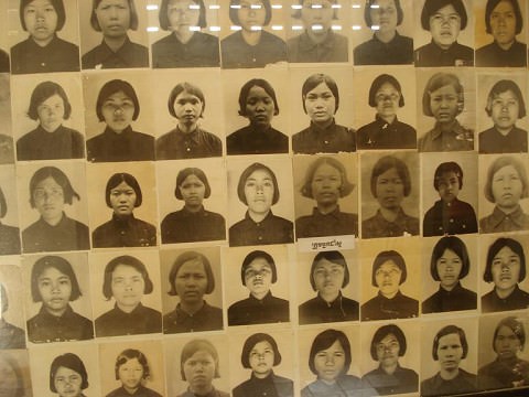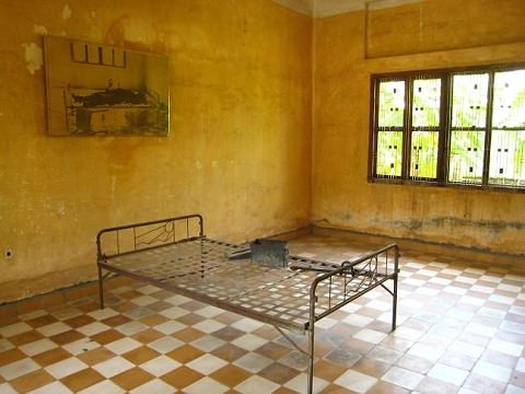 Yesterday, we did a tour of the city. We started out at Tuol Sleng (S21) prison in Phnom Penh. The place was originally a school, but was changed into a prison and interrogation center by the Khmer Rouge (a political group). We had an hour to walk around the prison. We first walk through 3 stories of rooms with one bed and torture equipment where men and women were tortured for information. They were shackled and locked in rooms with no bathroom facilities or mosquito nets.