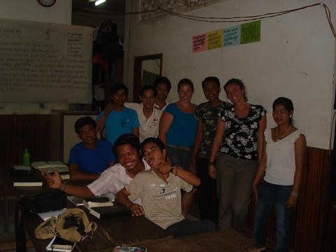 Yesterday, Annie, Morgan, and I went to visit the ChildSafe project.  The ChildSafe project warns tourists about giving money and/or food to the street children because it reinforces them living on the street.  They also provide training for guesthouse owners, tuktuk drivers, police, etc about the warning signs of child abuse.  The ChildSafe staff explained that it takes away from the social workers who are trying to convince the children they are other ways.  ChildSafe partners with a ministry called Friends International.  “Friends International has been working with street children to develop creative projects that effectively support the children to become independent and productors of their society.” It appears to be a neat, effective, and organized ministry.  Learn more about Friends International on the website http://www.friends-international.org We made sure to visit their store that sold items made by children and women.  Morgan, Annie, and I each purchased wallets made out of old laundry bags and newspapers.  We think they’re pretty cool.