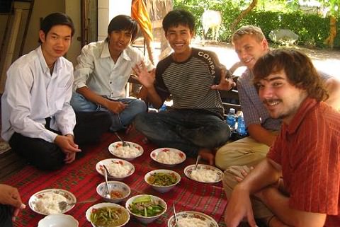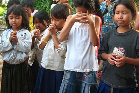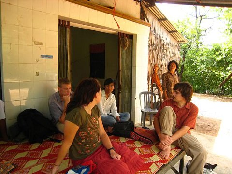 We left this morning at 7am, which is early for us. Sleeping in is one of the great benefits of having a nighttime ministry! It was nice to be awake before most of the heat, sun, and to see the city bustling in the morning. We arrived very punctually at 7:30am at HEC. We went straight from the tuk tuk to a van. The six of us, five Cambodians, and the driver were off. We were told it was going to be about a 45 km drive. We were soon fast asleep, well, until we hit the infamous bumpy roads found in ALL third world countries. I was quickly awake, but enjoyed listening to my ipod and watching the rice fields pass by and the close calls with other vehicles and motos. We arrived at our destination, were welcomed again by the intense Cambodian heat and humidity and were led to the pastor’s house. It was funny because we have done a lot of rural ministry in Mexico, Mozambique, and Swaziland yet this felt so foreign. I felt like I had to remind myself how to relate to people. We greeted the family on arrival, were offered seats, and watched as the awkward stares, miscommunication, and nervous giggles began.