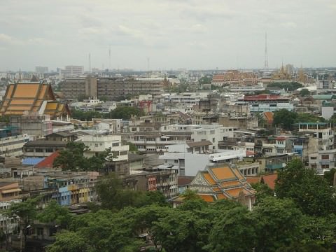 We made a stop by the Grand Palace, but did not enter because of its expensive cost.  We proceeded to take tuk-tuks to Wat Saket (Temple of the Golden Mount.)  Tuk- Tuks are small motorcycle/golfcart things where only 3 people can fit.  We arrived at Wat Saket, climbed the 318 stairs to the stop, and enjoyed the view looking over Bangkok.