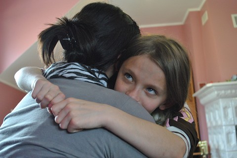 Receiving a hug from one of the sweetest girls at a Children's Home in the Carpathian Mountains, Ukraine.