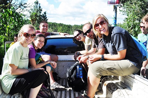 Jen, Angela, Johnny, Tiffany, Josh and Moriah traveling back to Quiche in a pickup truck!