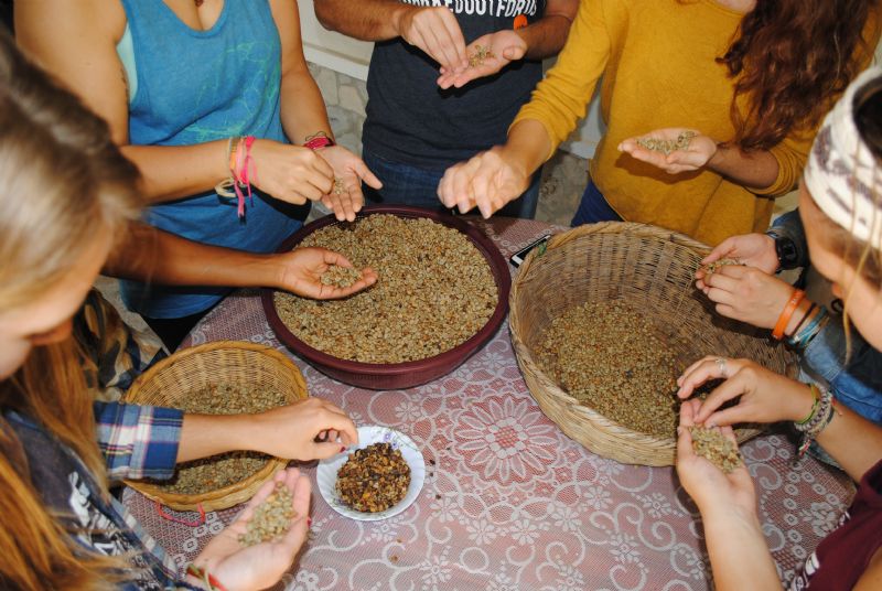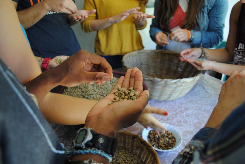 Once dry, the husks are much more ready to come off the actual coffee bean. We sorted through the dried beans to take out any of the remaining husks and any black or rotten beans. The more thorough you are in this cleaning process, the purer the coffee and thus, the better it tastes.