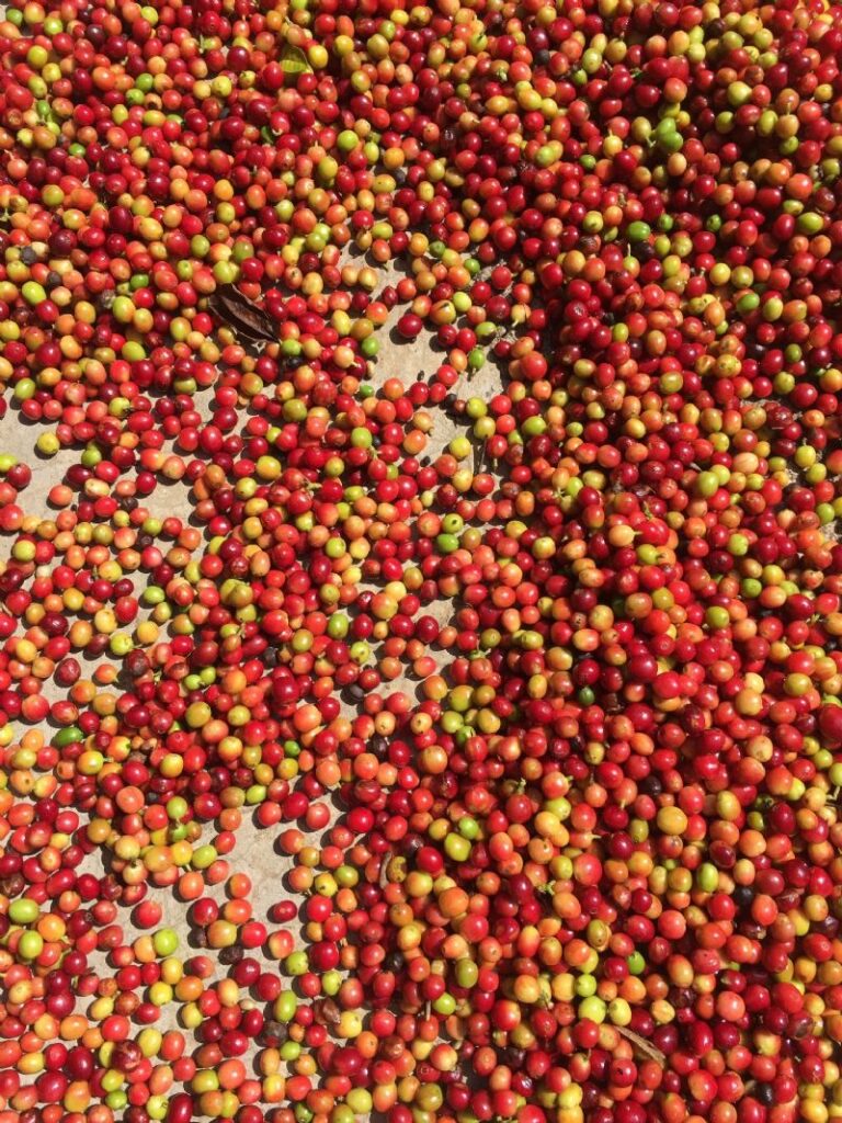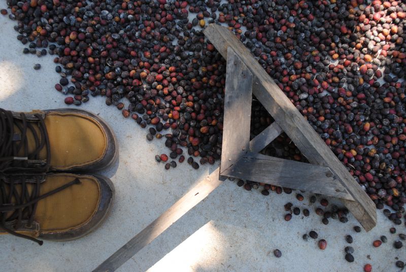 After the berries were picked, they were laid out in the sun to dry. This process usually takes a few days.